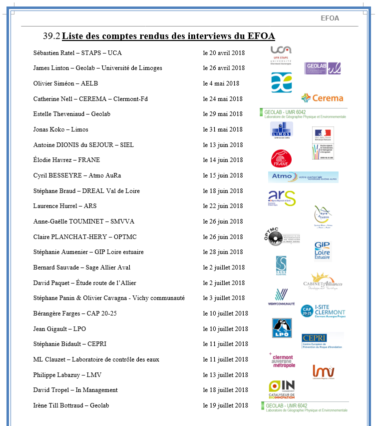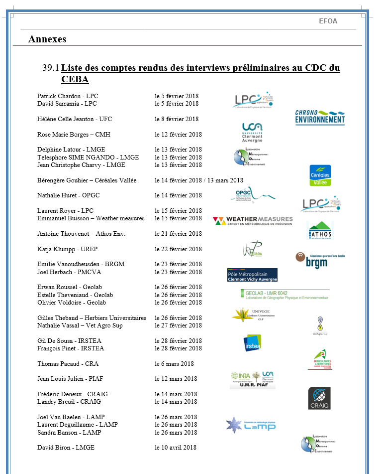 Nos études se basent sur des interviews réalisées avec nos partenaires potentiels. Les rapports sont disponibles en téléchargement ci-dessous, voici les listes des personnes rencontrées: